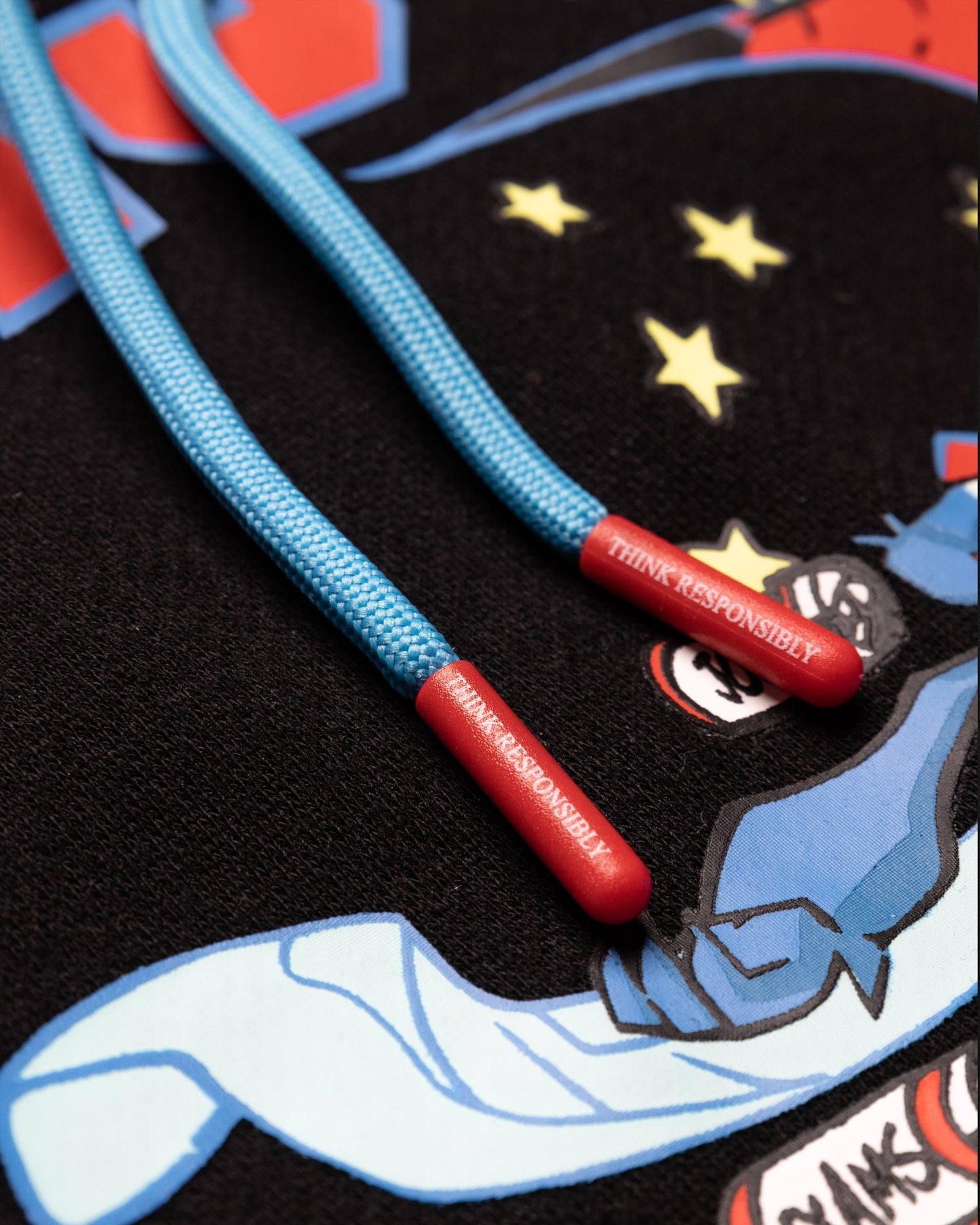 100% COTTON 16OZ HOODIE. RED AND BLUE DRAWSTRING PULLED DIRECTLY FROM THE BUZZIN SHORTS.