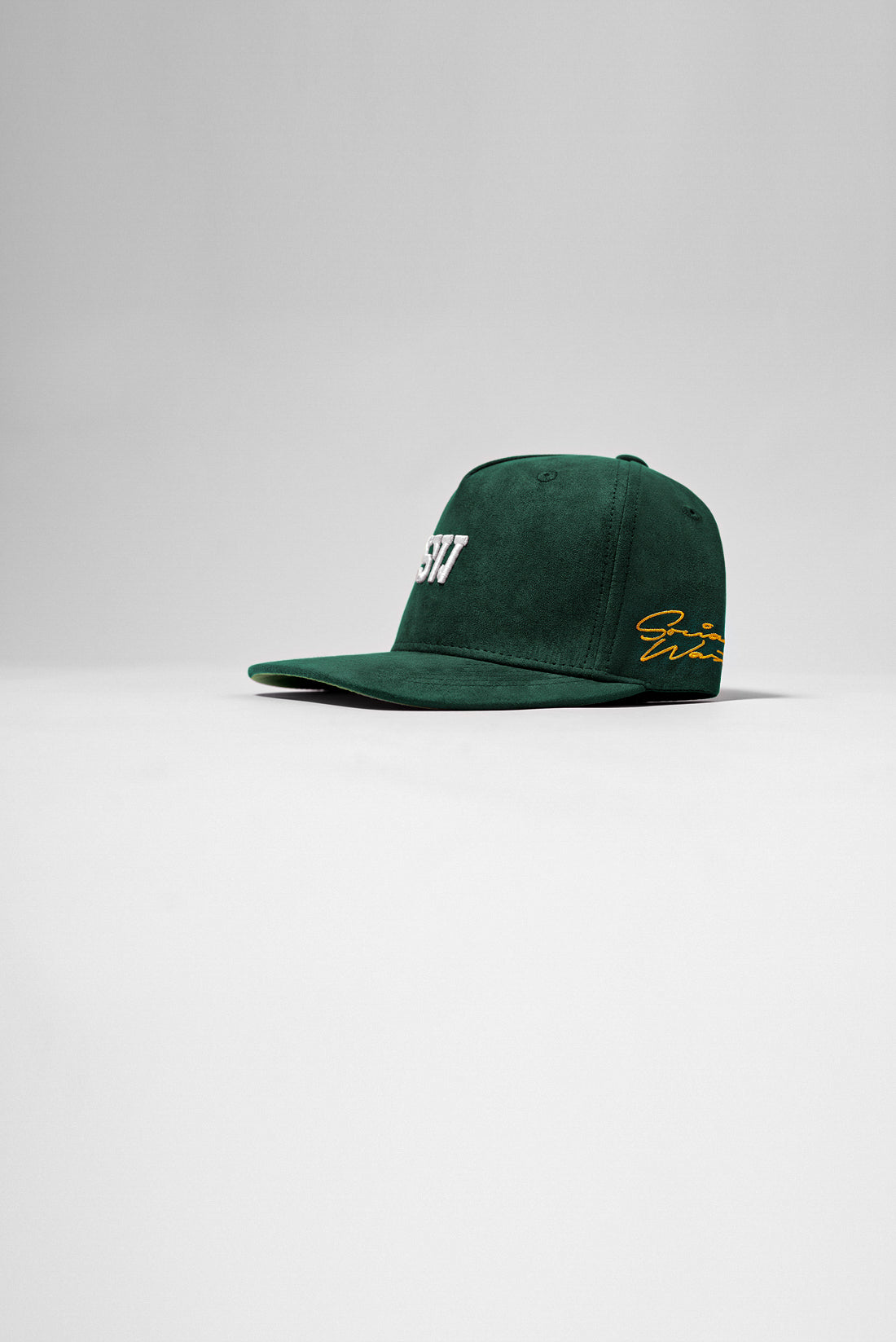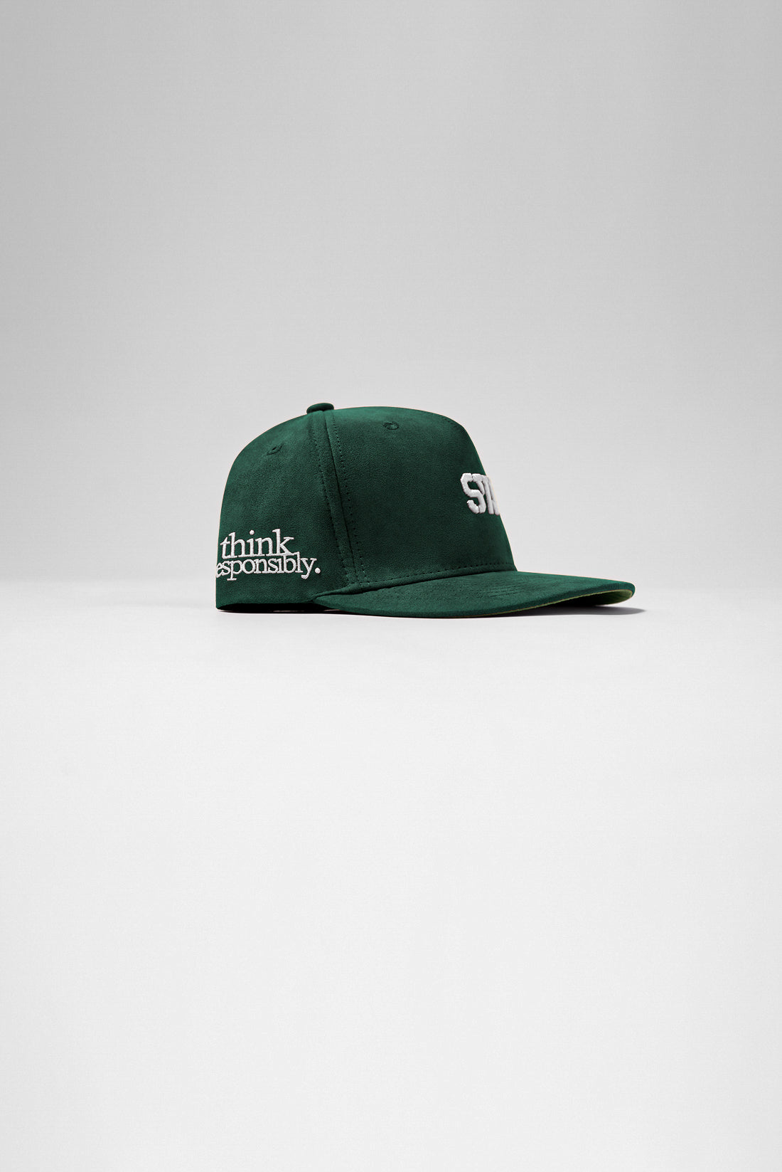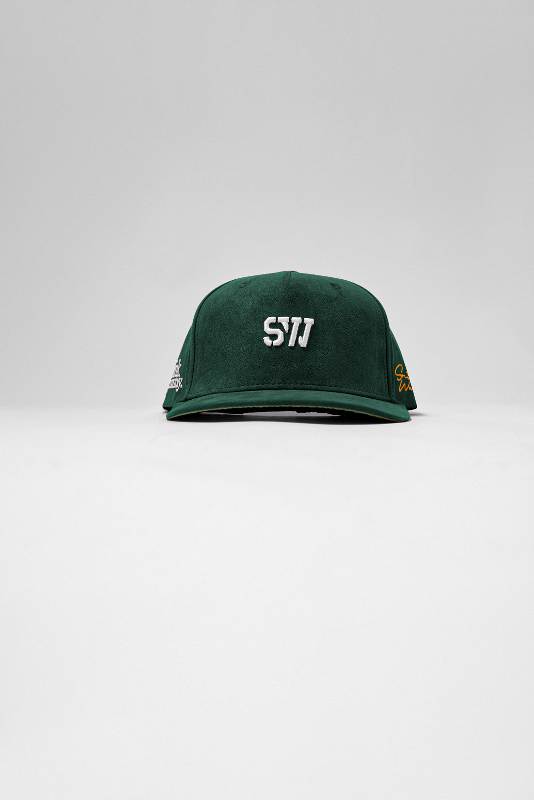5” Brim. 100% Suede SnapBack custom taping labels.