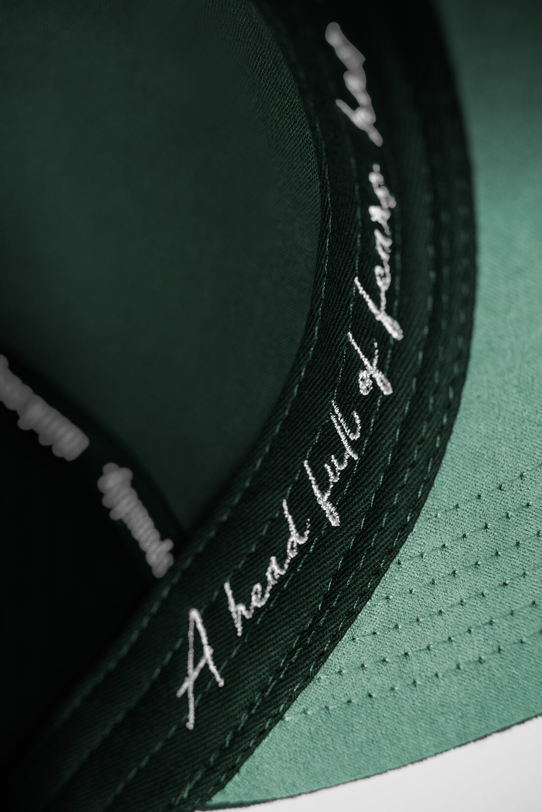 The classic retro green underbrim adds a subtle yet distinctive flair, creating a timeless aesthetic that complements any outfit. But the true essence of this hat lies within its details — embroidered in the inner lining are the powerful words, "A head full of fears has no room for dreams." This personal mantra serves as a reminder to break free from limitations, inspiring you to chase your aspirations fearlessly.
